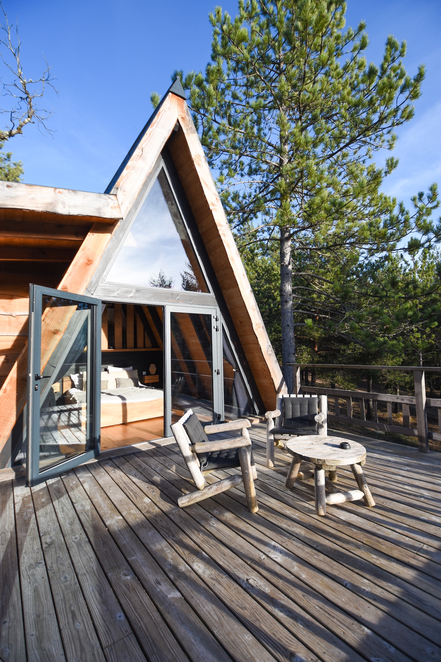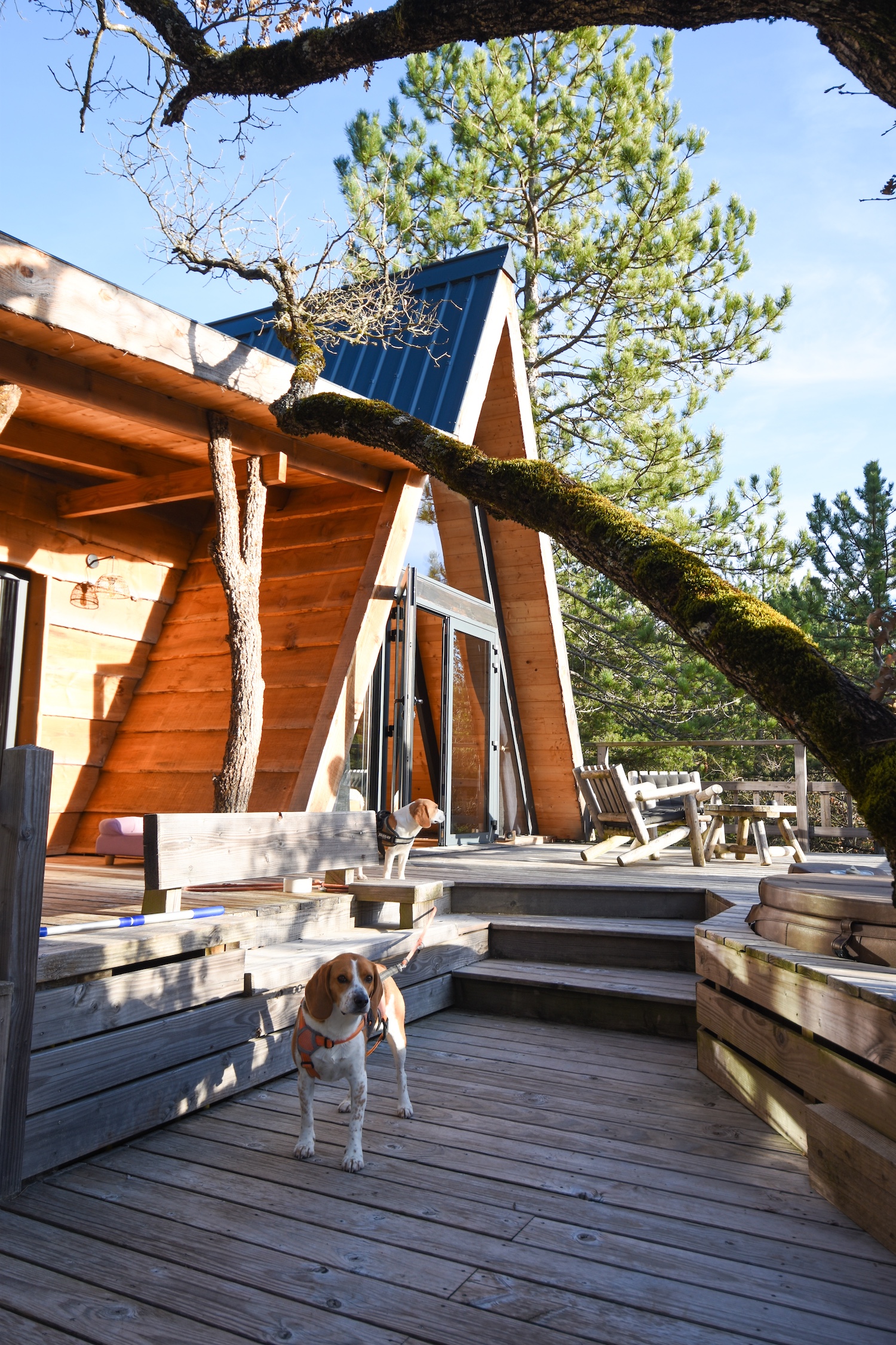 Aussi, notre cabane nous a totalement séduits par son design façon tipi, qui la rend encore plus unique. Une silhouette atypique, presque sculpturale au milieu des arbres, qui participe pleinement à l’expérience. Entre le spa privatif sur la terrasse et la possibilité incroyable de sortir le lit à l’extérieur, c’est typiquement le genre de détail dont on se souvient longtemps.
