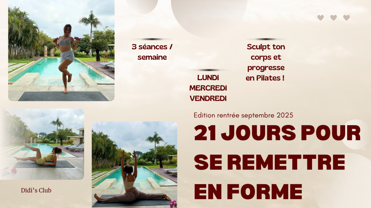 Didi’s Club, c’est ma plateforme de Pilates en ligne, pensée pour toutes celles qui veulent prendre soin d’elles, retrouver de l’énergie, sculpter leur corps et se sentir bien dans leur peau, peu importe leur niveau ou leur emploi du temps. Des programmes de pilates, des idées recettes, des boosts de motivation & un groupe d’échange entre girls ! Petite mention spéciale pour toutes les filles qui ont des maladies chroniques comme moi (SOPK, Colon irritable, Lipoedeme).